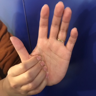 手の親指の付け根のぷっくりしているところに沿って手の甲と平を両方挟んで刺激するだけです!!
