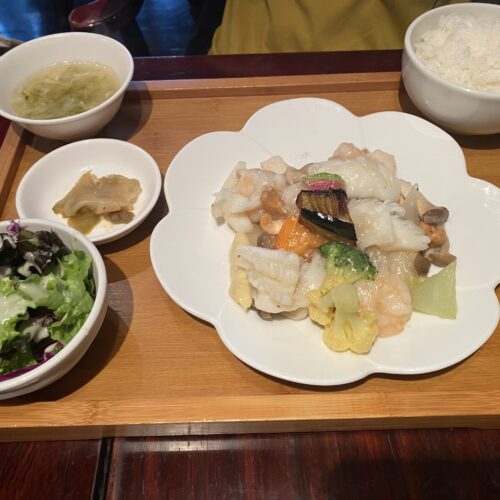 友達はエビとイカのカシューナッツ炒めランチ♪