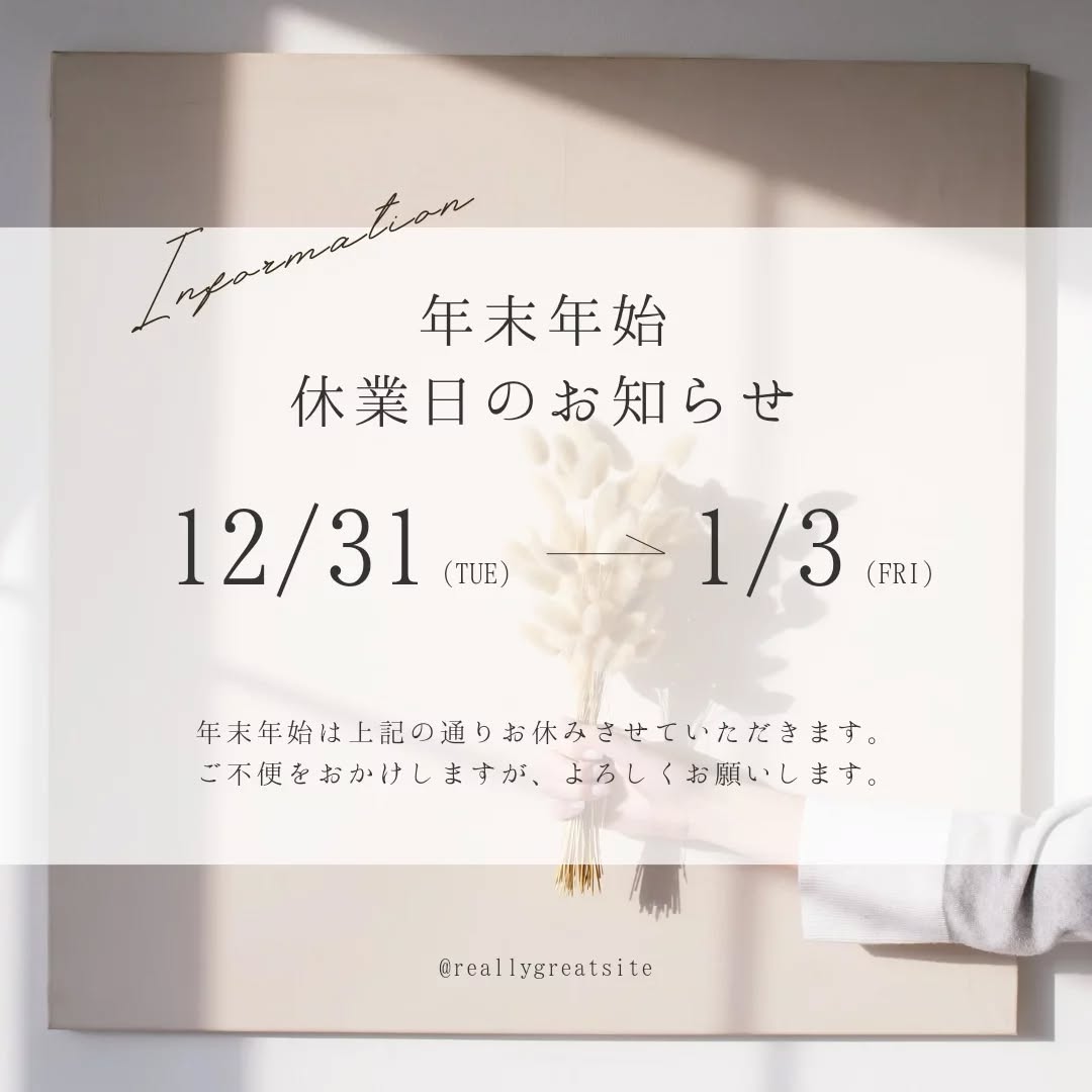 【12月】今年最後の月となりましたね! 年末年始は上記の通りお休みとなります。