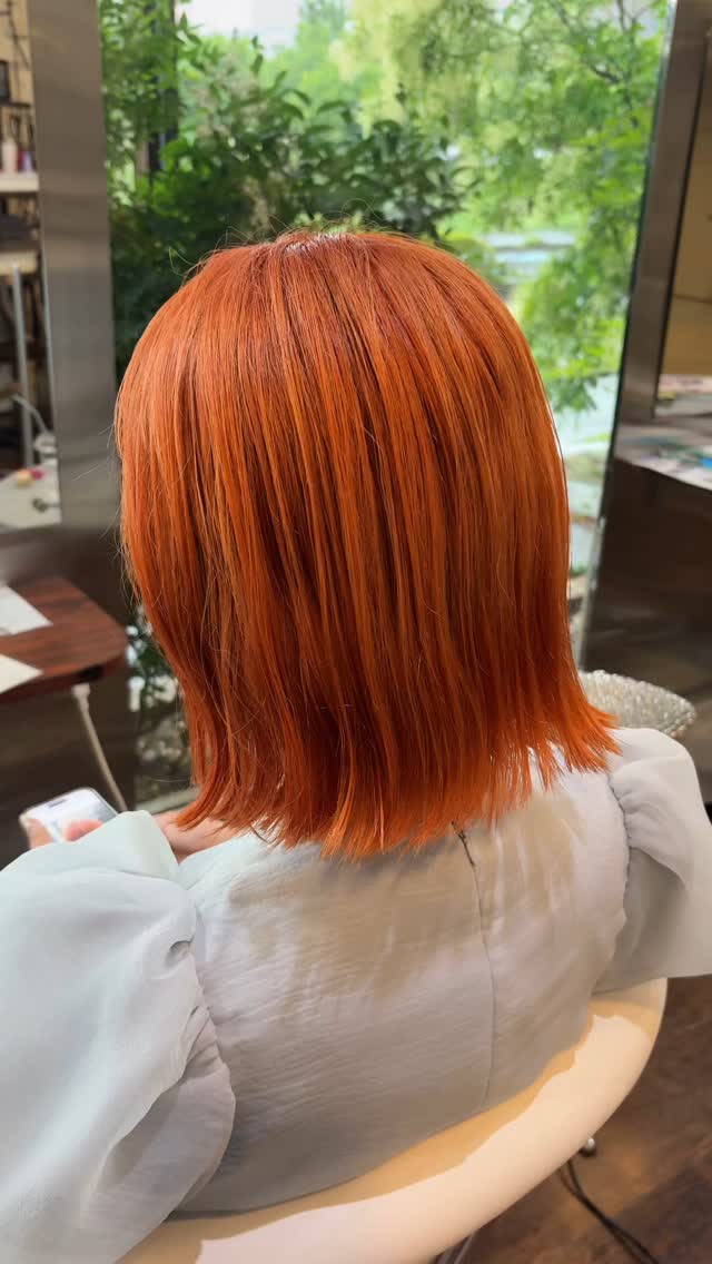 1ブリーチ×コーラルオレンジ 褪色も楽しみなハイトーンカラーです‍♀️