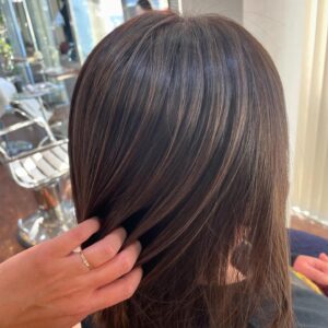 ハイライト×オンカラー♀️ 表面に数枚入れるだけでも 表情が変わるのでオススメです? スタイリスト 藤田 ママさん ママさん ・・・