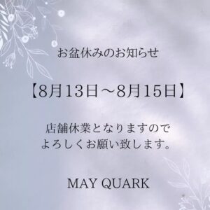 8月13日~15日は店舗休業となります。 お盆前は御予約がうまり...