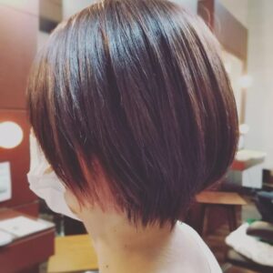 耳上に入れたインナーカラーがチラ見えでかわいいてすショートボブで...